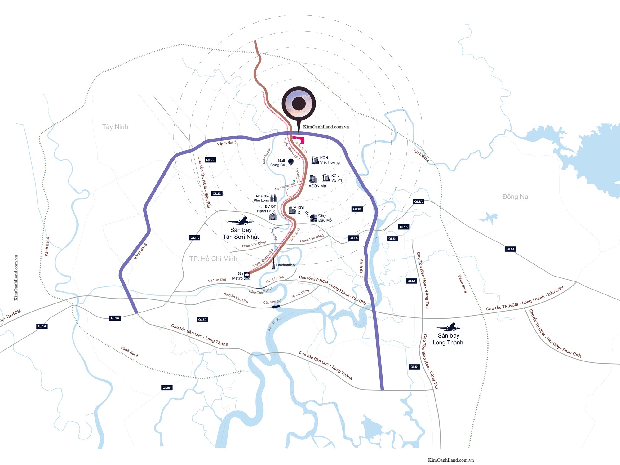 Tiện ích ngoại khu: tuyến Metro số 1, sân golf, siêu thị, các bệnh viện, sân Golf và khu công nghiệp tiêu biểu như VSIP,...