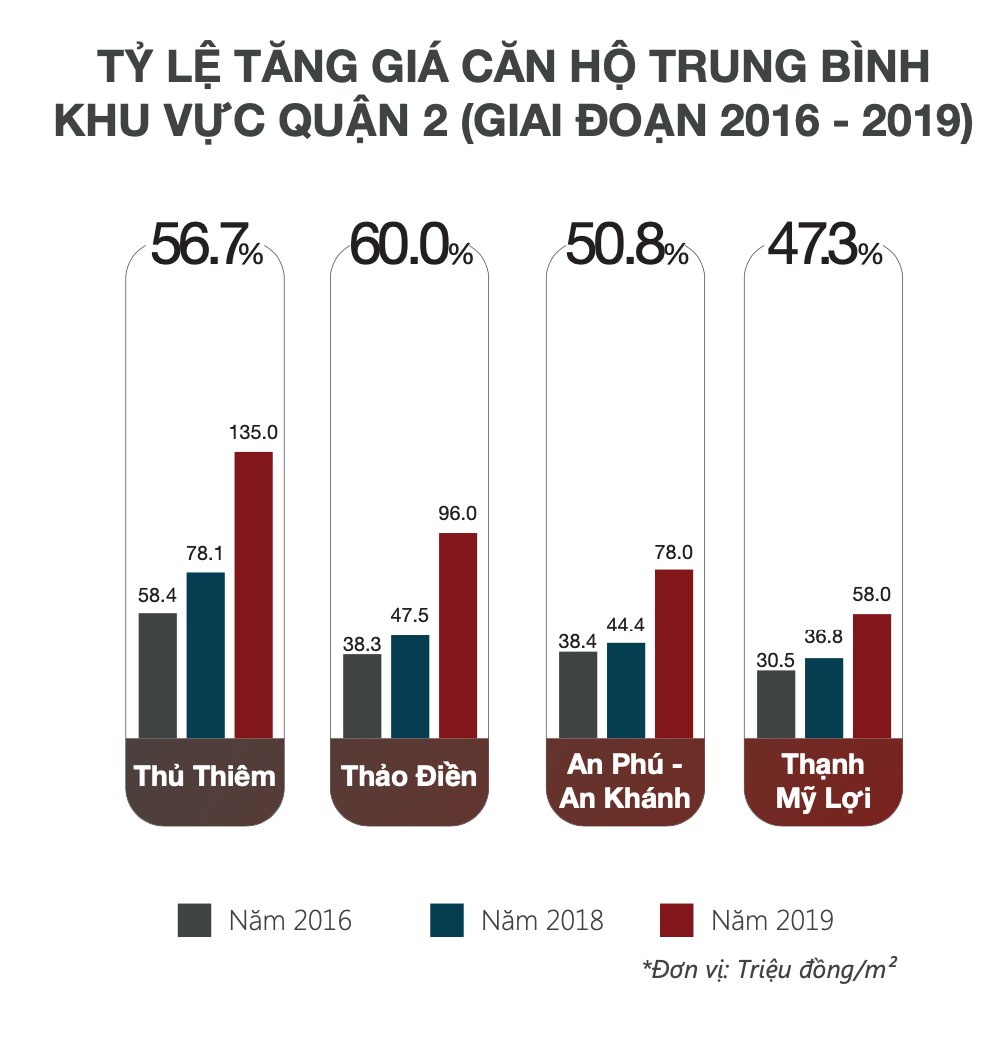 Quận 2 luôn là điểm nóng của thị trường bất động sản và không có dấu hiệu hạ nhiệt. Thực tế cho thấy nguồn cung căn hộ tại Quận 2 rất lớn, tuy vậy Quận 2 vẫn luôn có tỷ lệ hấp thụ cao lên đến 97% Bởi các yếu tố giá trị về vị trí vô cùng đắt giá cũng như các yếu tố phát triển cơ sở hạ tầng trong tương lai gần.